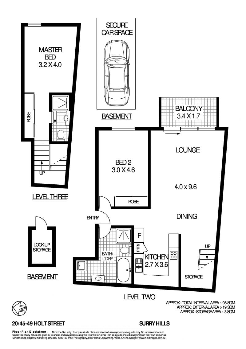 - Two good sized bedrooms on separate levels, both with mirrored built ins & ensuite off the main bedroom upstairs